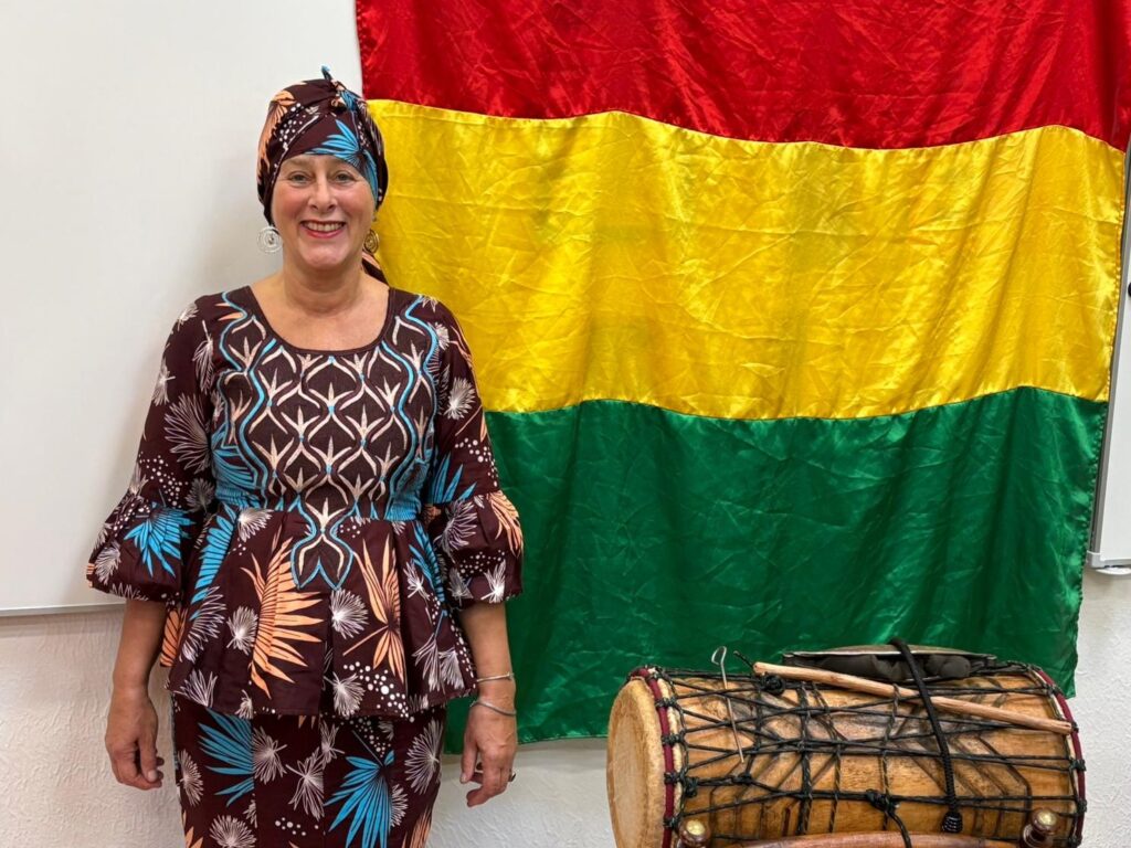 Voorzitter Paulien, getooid in traditionele Guinese kleding, vertelde vooraf over de stand van zaken aangaande de school én Bayo belde nog in vanuit Guinee om de meest actuele informatie te verschaffen over de werkzaamheden aldaar.