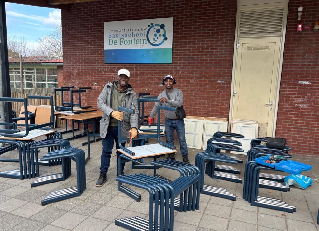 Met de verkoop van deze schooltafels en -stoelen heeft Bayo 2.000 euro in het Nanah-laatje gebracht. Hulde!